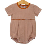Hook 'em early with the Bentley Bubble Suit in Burnt Orange Stripe! This perfect little onesie is a Texas classic that has tiny Longhorn fans ready from day one. The adorable bubble silhouette keeps your future quarterback comfy while showing off that burnt orange pride.