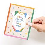 This quirky and fun card is sure to make any parent smile. Perfect for congratulating new parents or welcoming a new addition to the family. With a colorful and playful design, this card is a must-have for any cool kid.
