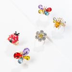 - Includes 5 vibrant rings: 2 butterflies, a bee, a ladybug, and a flower