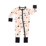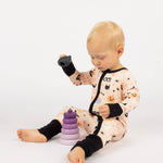 The softest bamboo baby pajamas in our Sweet and Spooky pattern! This fun Halloween print is perfect for fall. Check out more with this print for the cutest sibling match! Product has elements that glow in the dark after exposure to light. Allow some time for glow to take effect.