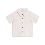 Spruce up your little one's warm weather wardrobe with this classic seersucker top! The dapper button down includes a collar, pleated back, and pocket on the chest.