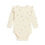Sweet details meet everyday comfort in the Leza Ribbed Ruffle Bodysuit. Featuring delicate ribbed ruffles with picot edge stitching along the armholes, this long sleeve bodysuit is a charming staple for layering or wearing on its own. A rib-bound neckline and snap leg opening make changes quick and easy for wiggly little ones.