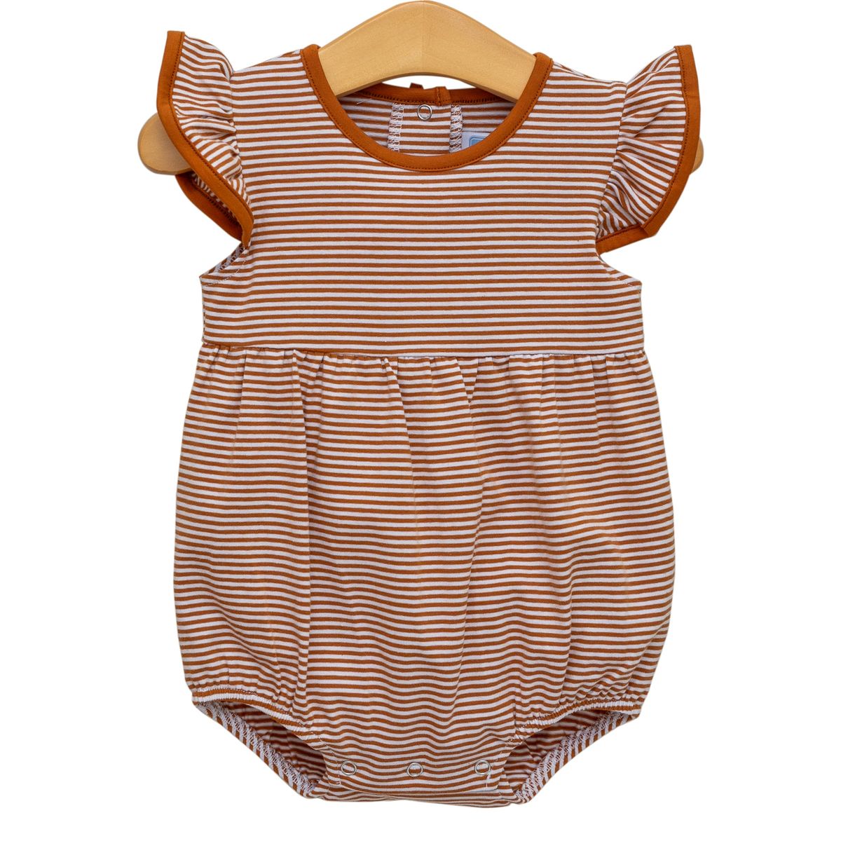 Bubble up that Longhorn spirit with the Lucy Game Day Bubble in Burnt Orange Stripe! This adorable outfit is just what your tiny fan needs to show their team pride from the very start. The playful bubble silhouette keeps your little one comfy while looking utterly precious on game days.