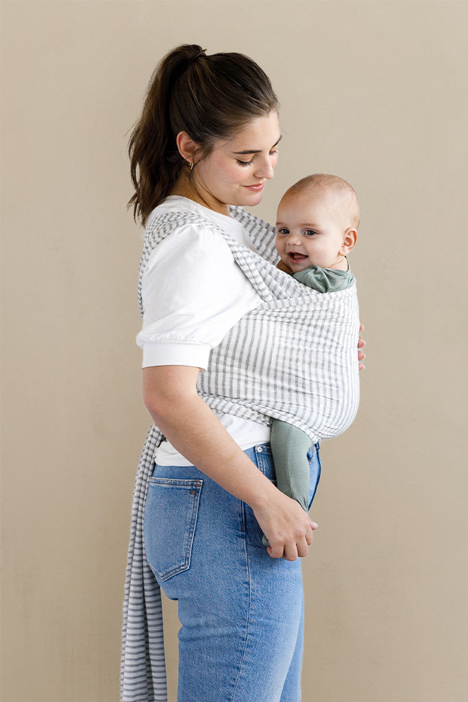 Our original Natural + Grey Stripe Solly Baby Wrap keeps both you and baby comfortable for hours. Nurture a strong connection and free your hands to tend to life with this game-changing baby carrier, which has been named “The Best Wrap Carrier for Newborns” by Glamour Magazine.
