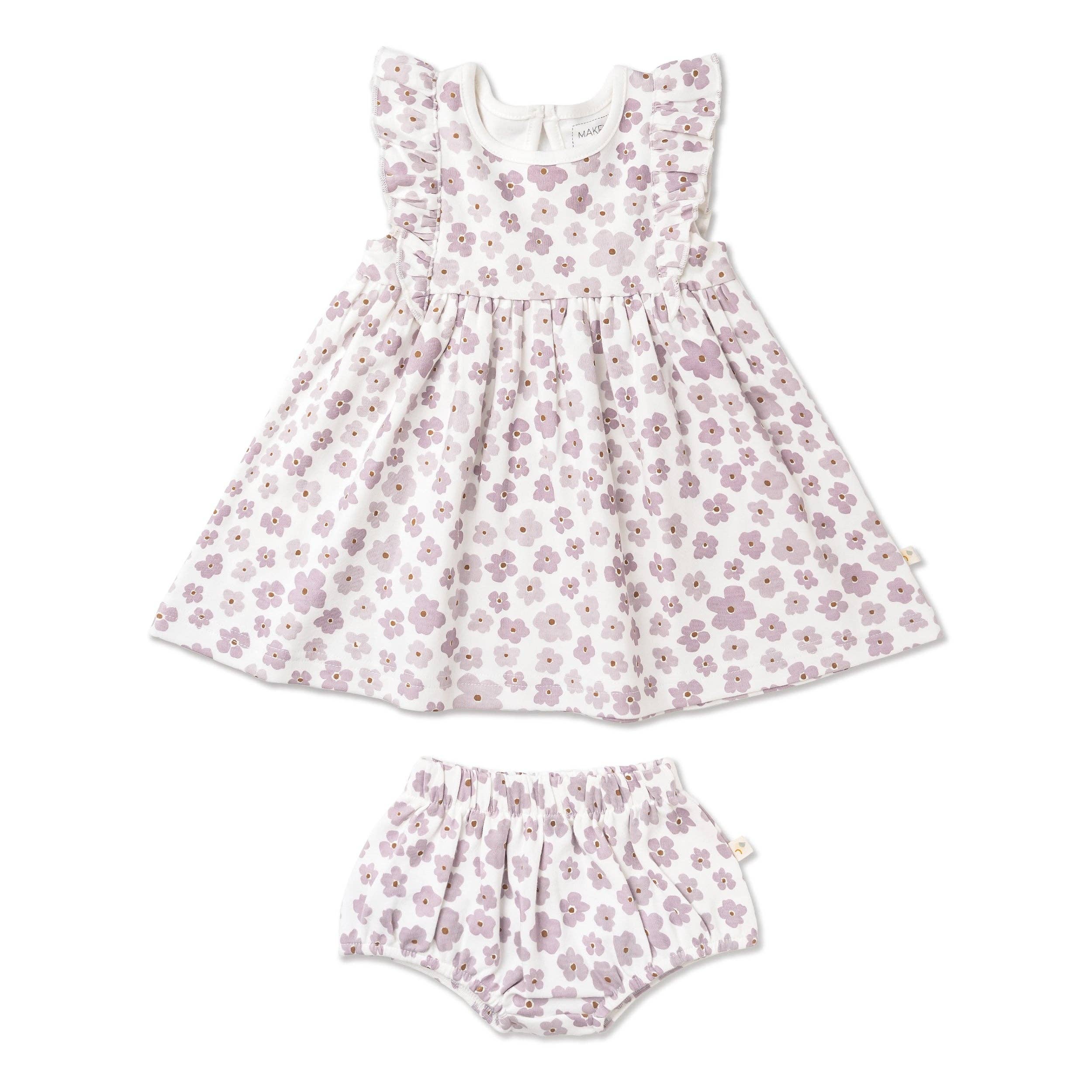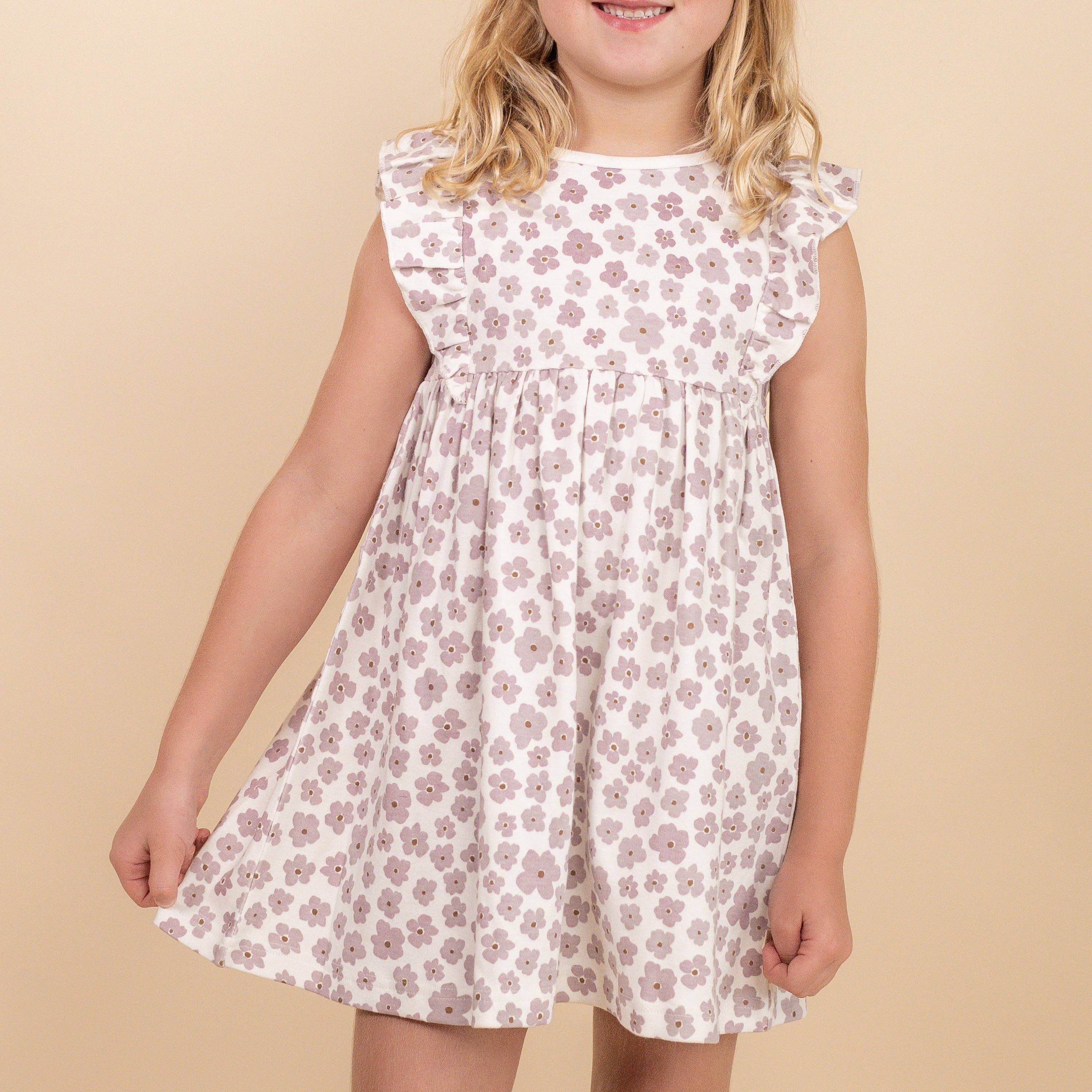 With a dash of poise and a splash of creativity, this gorgeous classic flutter dress is unique and remarkable! This classic dress is made from the most amazing organic fabric, and the playful details will make any baby girl's wardrobe burst with joy!