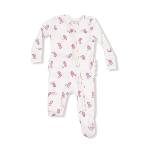 Petite Cowgirl Boots Ruffle Zipper Footie