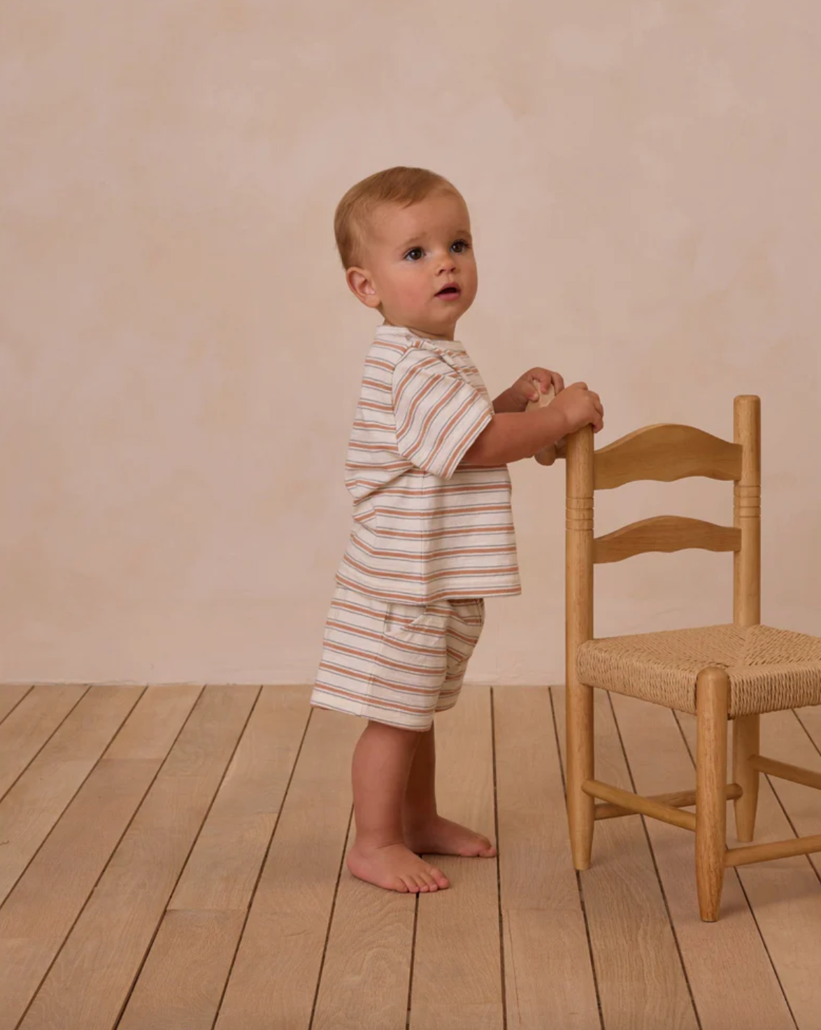 Introducing the Rylee + Cru Play Set in Grapefruit Stripe! Our Play Set includes a short sleeve top and coordinating pocketed shorts - your kids will have fun in this look all season long!