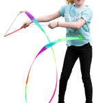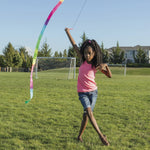 Twirl this vibrant rainbow streamer and watch it dance through the air! The easy-grip baton handle lets kids pull the control cord to create amazing flowing shapes with the bright neon ribbon. Perfect for outdoor adventures, this durable streamer stretches 6.5 feet of colorful fun that stands up to hours of active play.