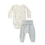 Made from soft brushed jersey, this newborn-friendly set features a side snap bodysuit for easy changes and coordinating footed pants with a foldover waistband.
