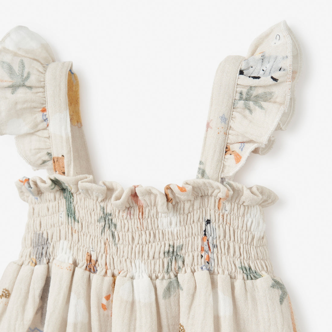 Seaside Safari Muslin Smocked Dress + Bloomer
