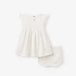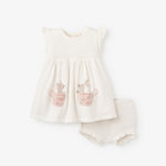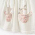 This teacup party knit baby dress is giving us all the feels! A sweet blush pink colored fine knit is the perfect weight for spring weather. Hand-embroidered details add the right touch of whimsy to this already adorable luxury baby dress. Pair with a linen toy or coordinating teacup party blanket to make the ultimate baby gift set.