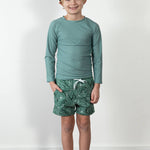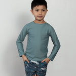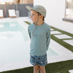 Made from our signature ultra soft + stretchy chemical free fabrics, these rashguards are the perfect complement to our Boardies in both style and design. Simple lines and comfortable stretch - these are an easy add or remove items to provide extra coverage as needed. Our wide neck design allows for easy on and off, encouraging little hands to Our 4-way stretch and reinforced seams ensure this rashguard will hold up to the toughest adventures and last for years. Gender neutral in design, these are designed to fit at the higher end of the sizing to ensure longer wear for your little ones.