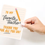 Let your favorite teacher know how much they mean to you with our "To My Favorite Teacher" greeting card. Show your appreciation with this quirky, heartfelt card. Perfect for any occasion!