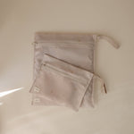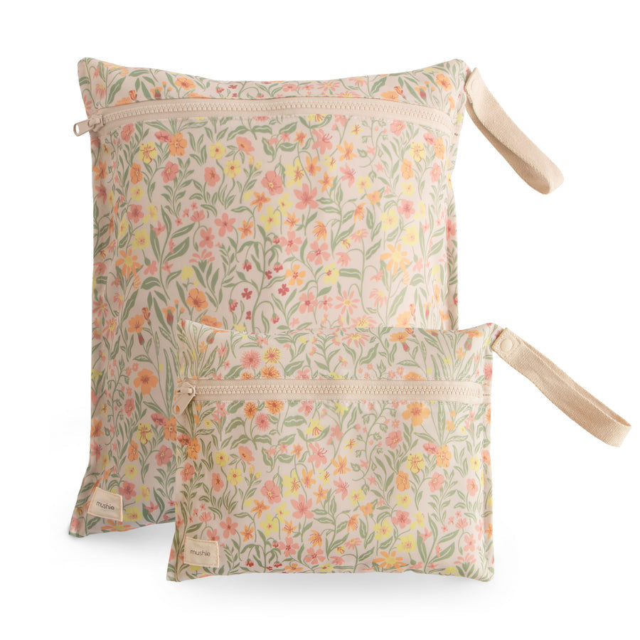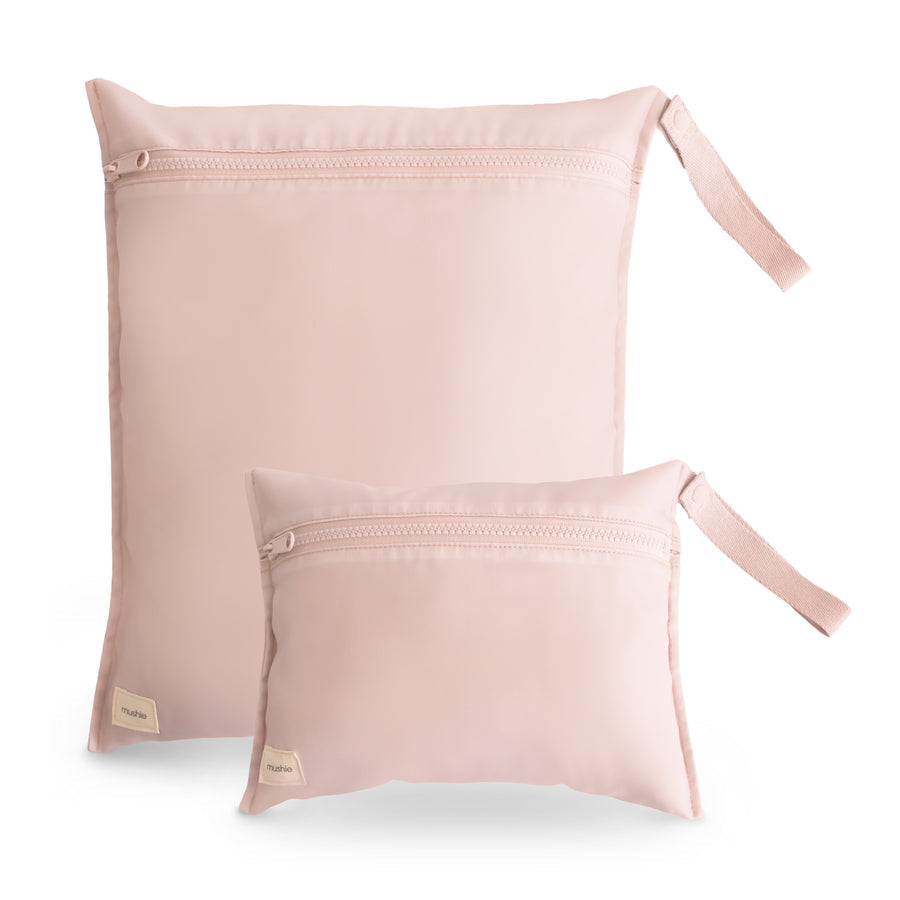 Whether dealing with wet swimsuits or dirty clothes, parents can be prepared for any adventures that come their little’s way with a set of Mushie wet bags. Featuring a zipper closure and machine washable, water resistant material, our wet bags were designed to help tackle messy situations on the go. The handles include a snap closure to easily hang or attach to a stroller. Each set offers two different sizes, making these a convenient storage solution to include in a diaper bag or school bag.