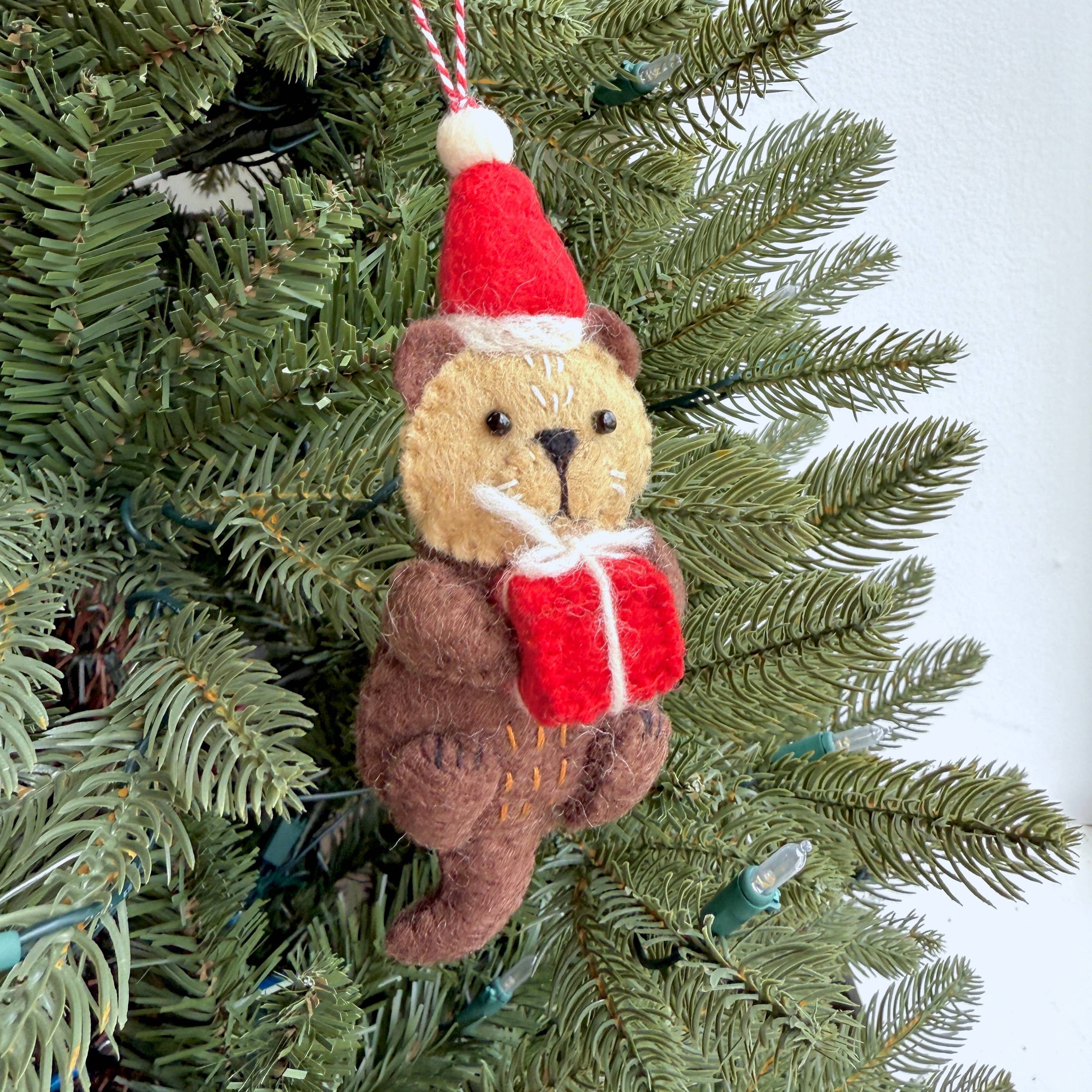 Otter Santa Hat Felt Ornament