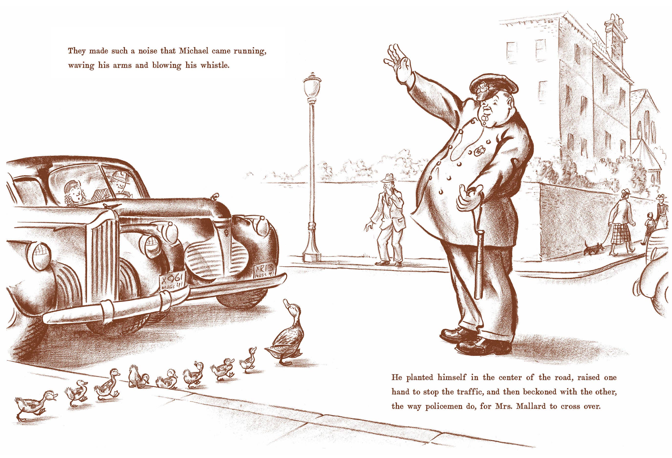 Mrs. Mallard was sure that the pond in the Boston Public Gardens would be a perfect place for her and her eight ducklings to live. But when the busy streets of Boston become too risky for her and her family to navigate, the local police step in to make sure Mrs. Mallard and her ducklings—Jack, Kack, Lack, Mack, Nack, Ouack, Pack, and Quack—make it to their new home safely.