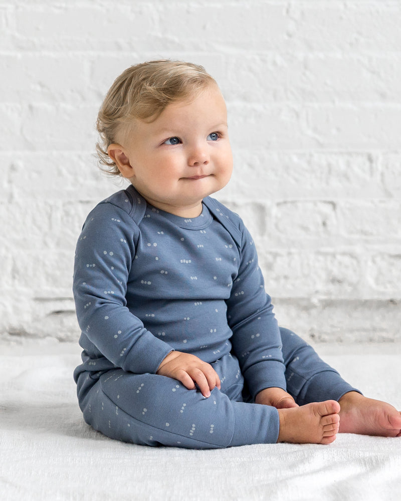 This comfy-cozy romper is the perfect piece for your baby's wardrobe! Mindfully made, with lapped shoulders and leg snap up seams with backing for increased comfort and easy, hassle-free changes.