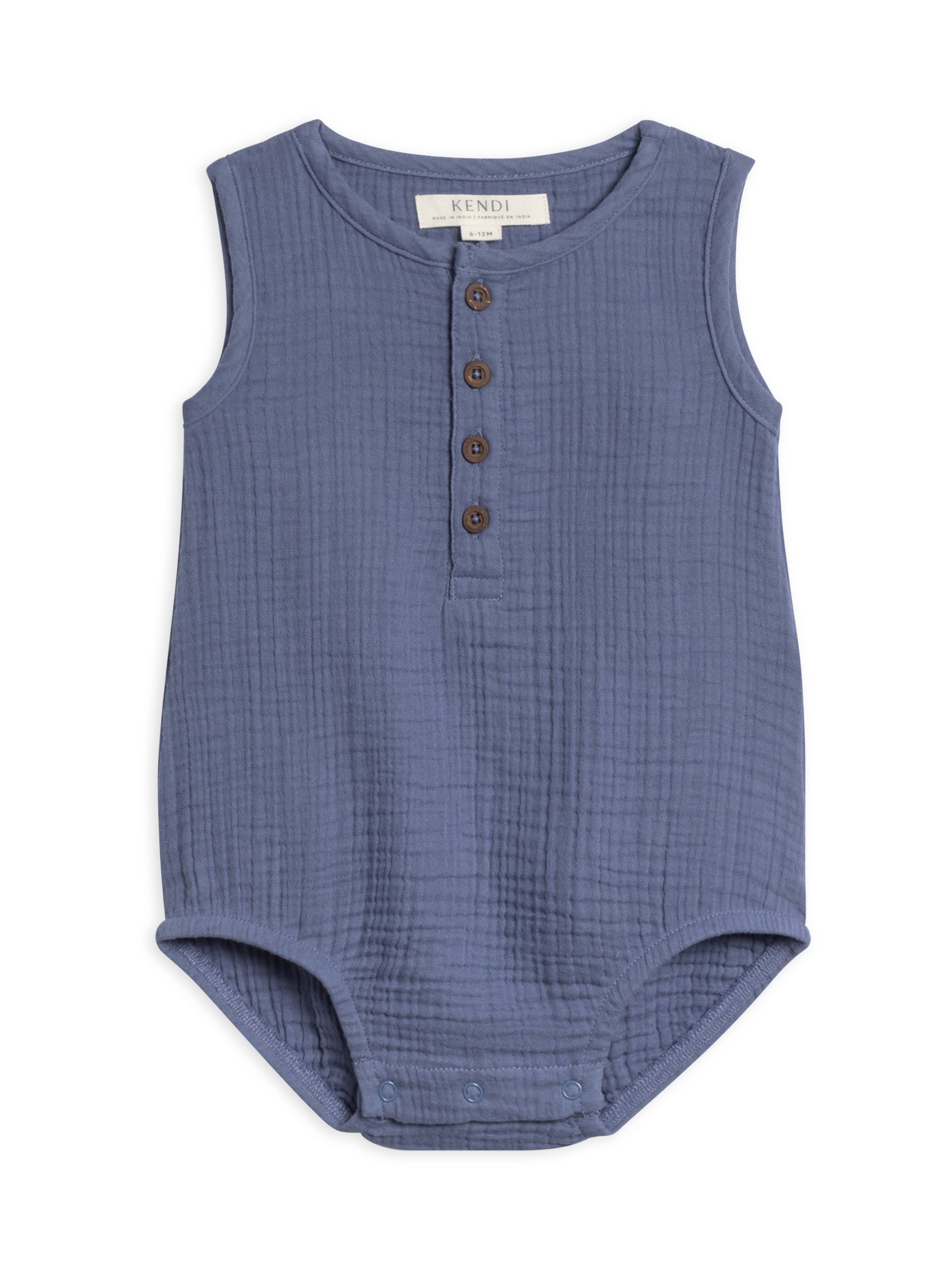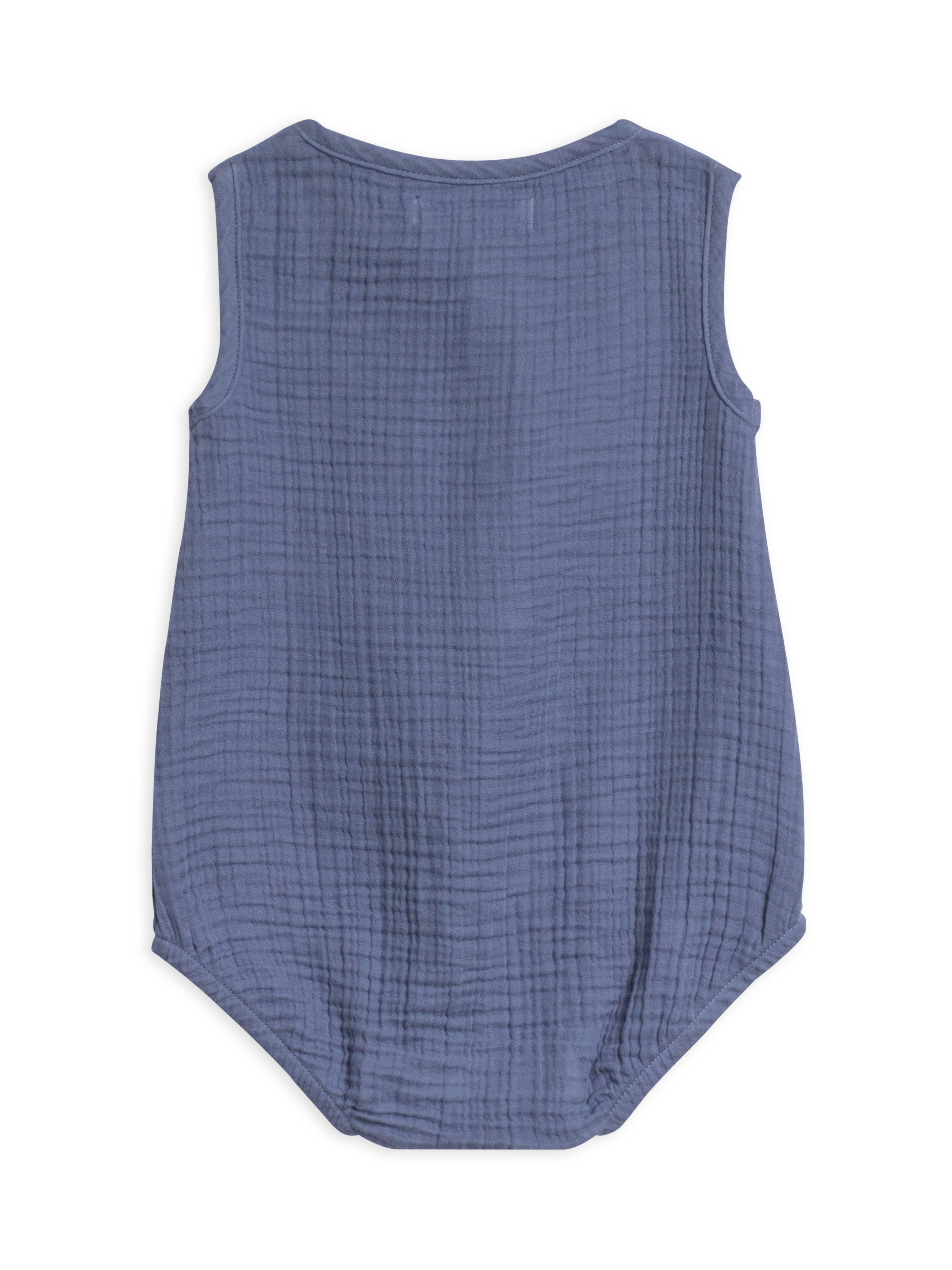 The Bowie Muslin Bubble Romper is the ultimate crossover between cute and comfortable. With the most adorable coconut button placket, relaxed fit, elastic leg openings, and crotch snap closure for easy diaper changes, this sweet romper will be a new favorite for mom and baby.