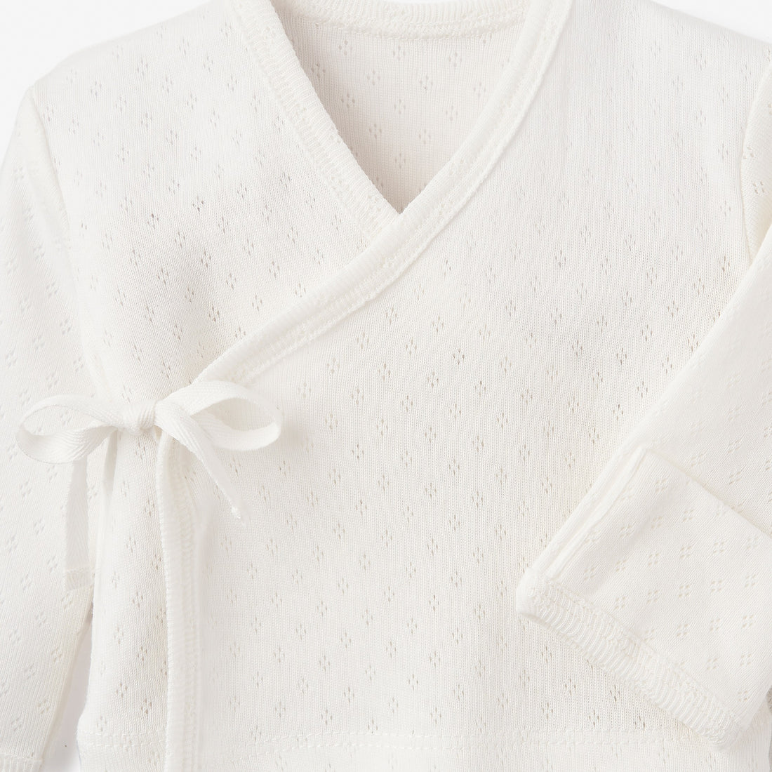 - 3 piece set includes: adjustable hat, kimono top, and footed pants