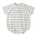 Bubble romper in our comfy terry cloth fabric designed with a front button placket and bottom snaps for easy changes.