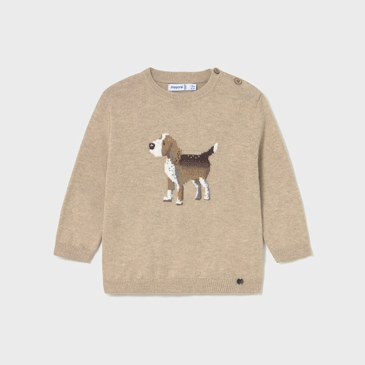 Puppy Knit Sweater - Beige Heather