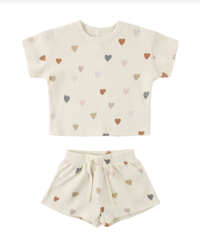 Waffle Tee + Short Set - Confetti Hearts