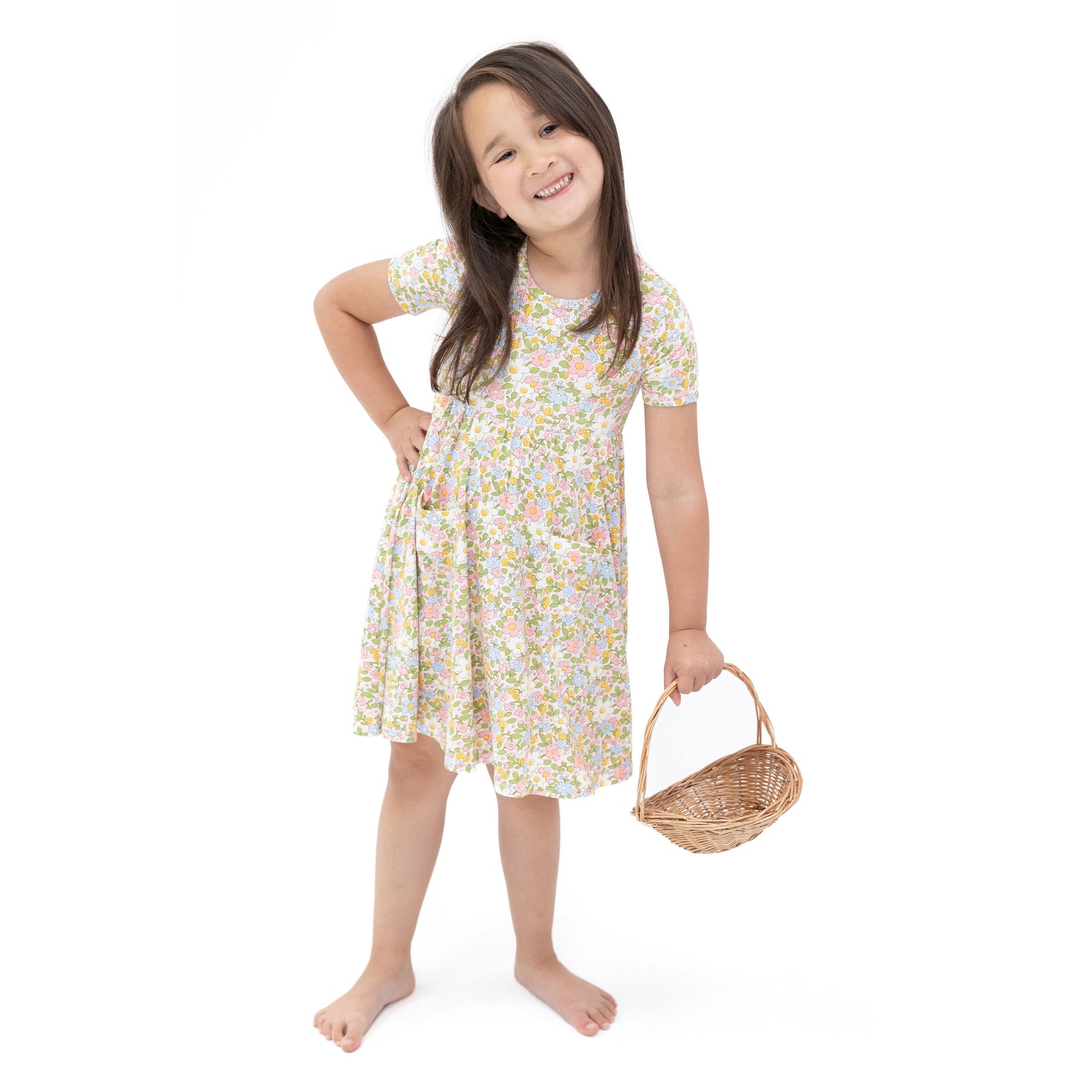 Let your little one spin with joy in our Short Sleeve Twirly Dress, crafted from ultra-soft and Viscose from Bamboo fabric. Perfect for twirls, playdates, and every adventure in between, this dress combines style, comfort, and practicality.