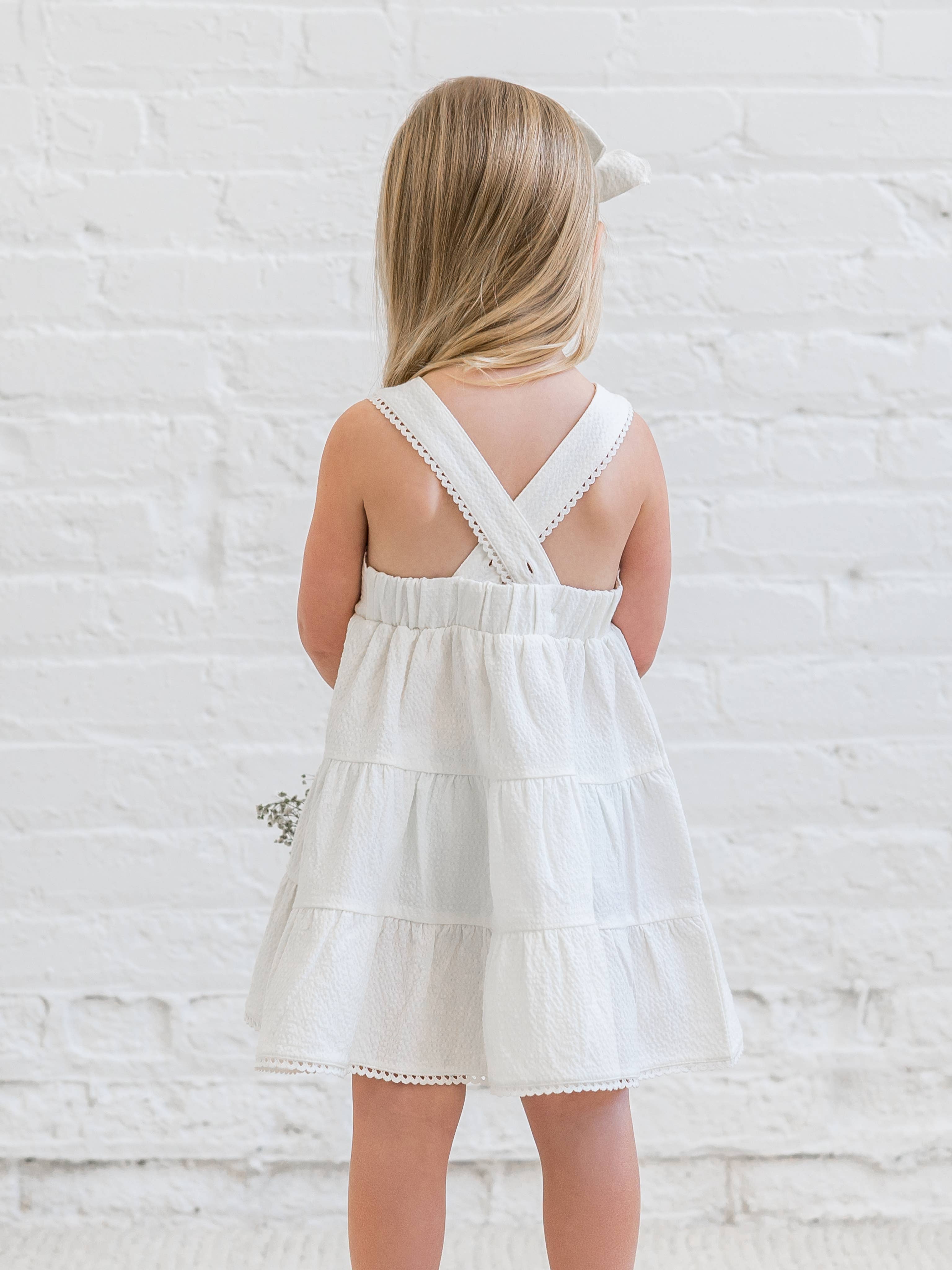 The Zoey Seersucker Tiered Tank Dress is perfect for your little one’s sunny-day wardrobe, offering both comfort and charm in one sweet package. Whether it’s for a family picnic, a birthday bash, or a day of outdoor play, this dress will keep your child looking adorable and feeling comfy all day long. With adjustable straps, a tiered ruffle skirt, and delicate crochet scallop trim, it’s the perfect mix of playful and pretty.