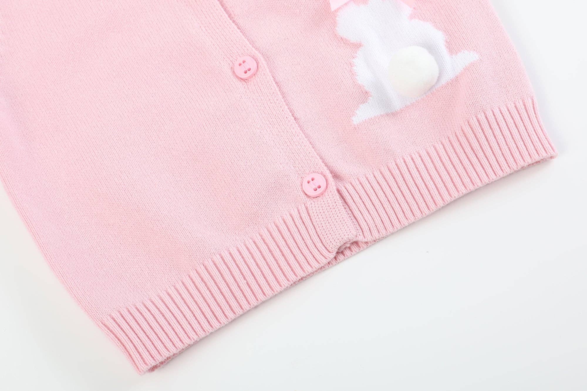 Dress your sweet bunny in our Pink Knit Easter Bunny Cardigan, adorned with an adorable bunny featuring a charming pompom tail. This sweet and cozy cardigan is the perfect companion for Easter festivities, adding a touch of whimsy to your child's wardrobe. Keep her snug and stylish in this delightful piece that captures the cuteness of the season.