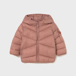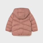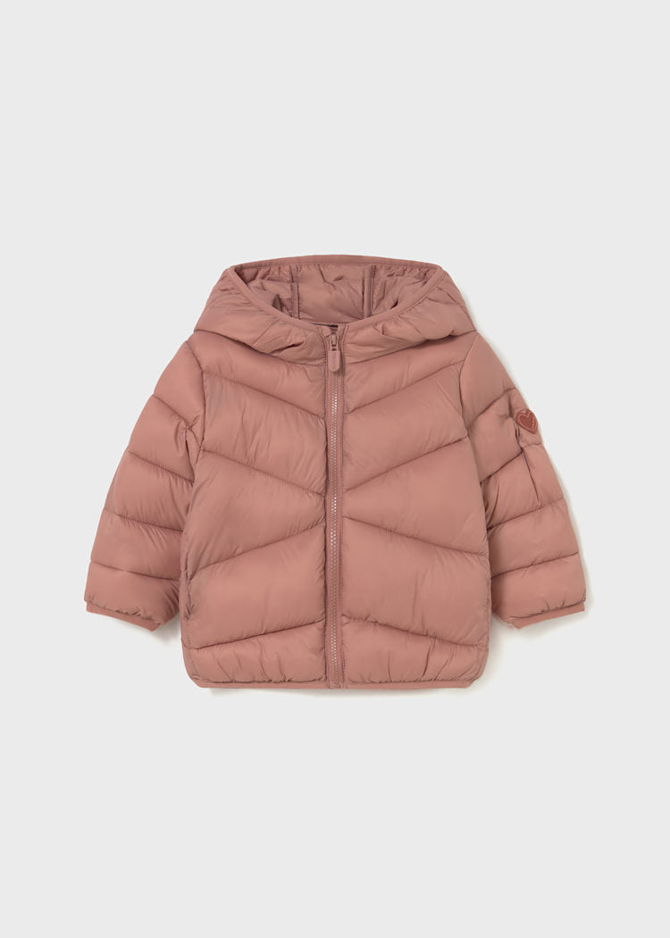 Contains recycled polyester. Long sleeved Puffer jacket for baby. Hooded collar. Front, central zip fastening. Textile exterior with quilted effect. Functional front pockets.
