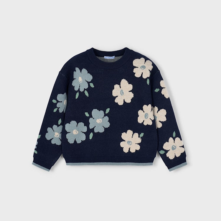 Jacquard Girl's Sweater - Petroleum