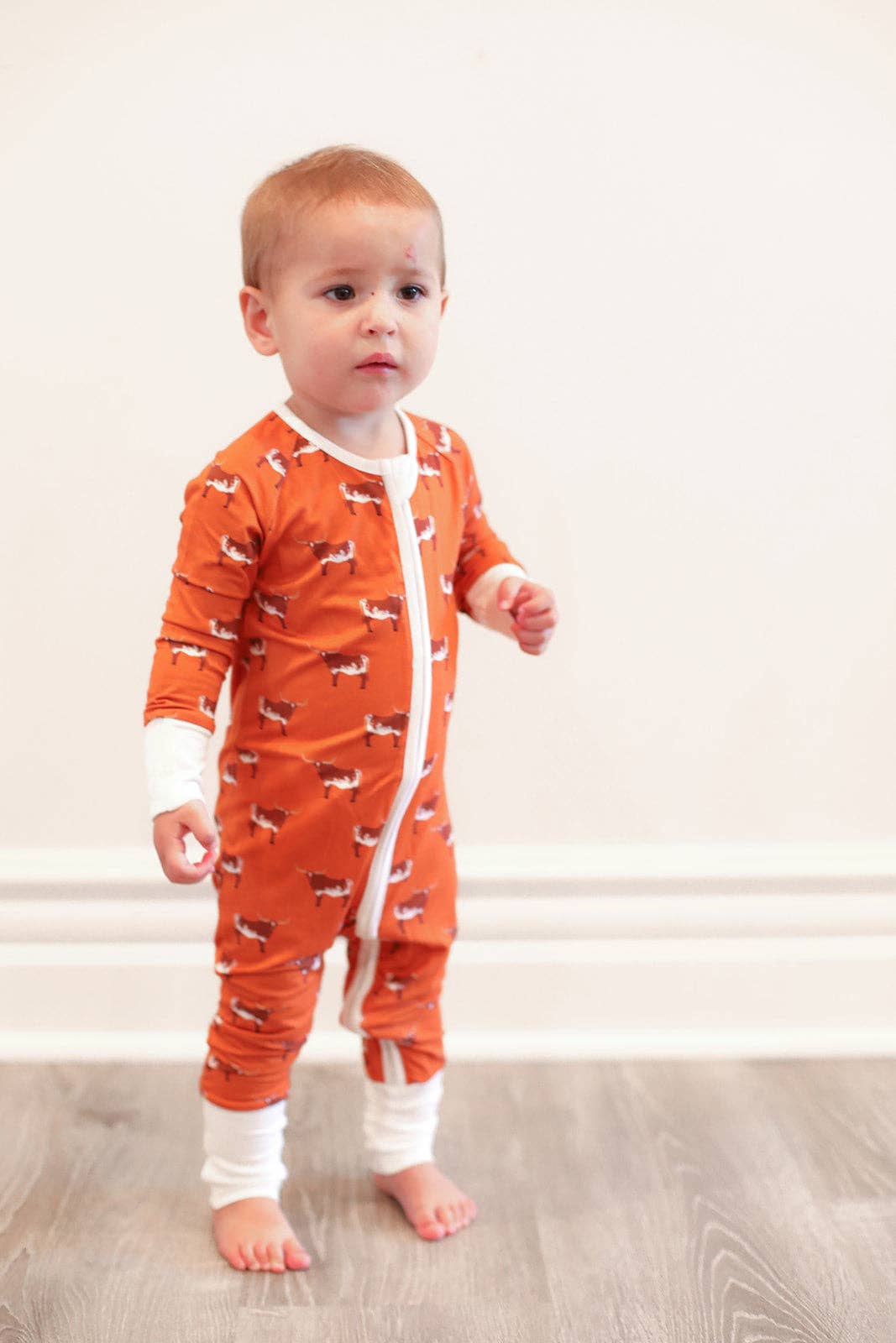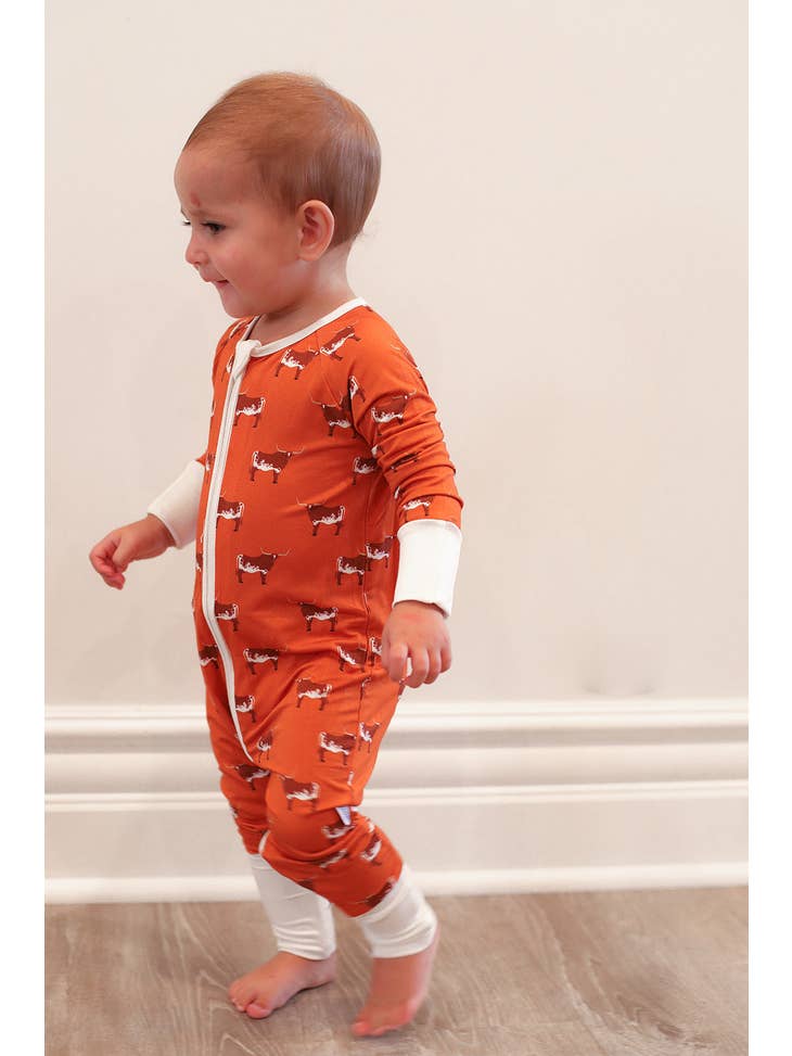 GO TEAM! Our double zipper sleepers are made of the softest material - viscose from bamboo! So gentle on skin and perfect for any season, which is great because these sleepers last much longer than your average pajamas due to bamboos amazing stretch abilities. Our Longhorn Pattern was created to be a gender neutral classic design that's sure to become a bedtime staple for your little!