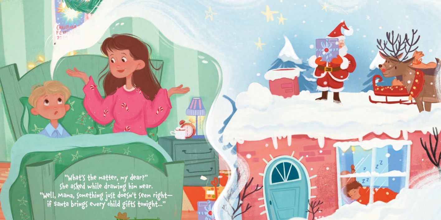 “Well, Mama, something just doesn’t seem right—if Santa brings every child gifts tonight, who makes sure all HIS gifts are wrapped up tight?”