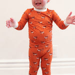 GO TEAM! Our 2 piece pajama sets are made of the softest material - viscose from bamboo! So gentle on skin and perfect for any season, which is great because these sleepers last much longer than your average pajamas due to bamboos amazing stretch abilities. Our Longhorn pattern was created to be a neutral classic design that's sure to become a bedtime staple for your little!