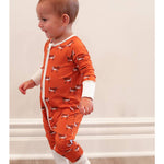 GO TEAM! Our double zipper sleepers are made of the softest material - viscose from bamboo! So gentle on skin and perfect for any season, which is great because these sleepers last much longer than your average pajamas due to bamboos amazing stretch abilities. Our Longhorn Pattern was created to be a gender neutral classic design that's sure to become a bedtime staple for your little!
