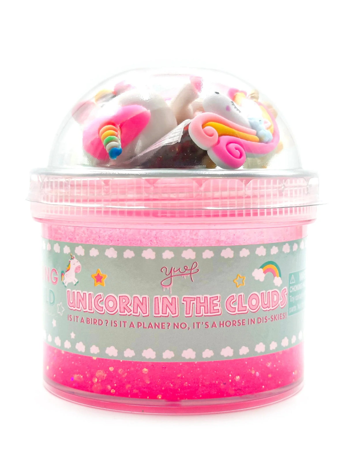Unicorn in the Clouds is our fan-favorite gel slime with a light watermelon scent! With a rainbow sprinkle mix, rainbow resins and a beautiful unicorn in the topper, your kids will be thrilled to play with this fun slime for hours on end.