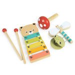 A bear xylophone, a dragonfly clacker, a toadstool maraca and a froggy castanet to create a real cacophony of woodland sounds.