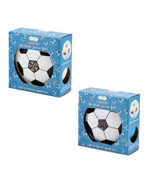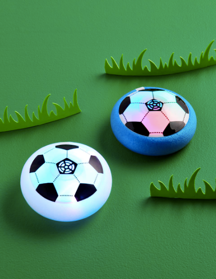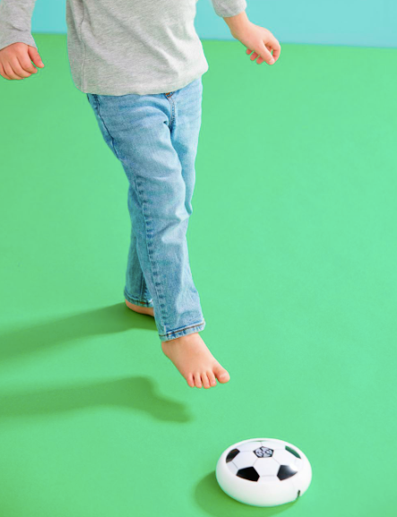 Indoor soccer ball that uses air power to hover across smooth surfaces! Features cushioned bumpers to protect walls and furniture and flashing LED lights. Perfect for keeping your kiddo's entertained without hurting the house!