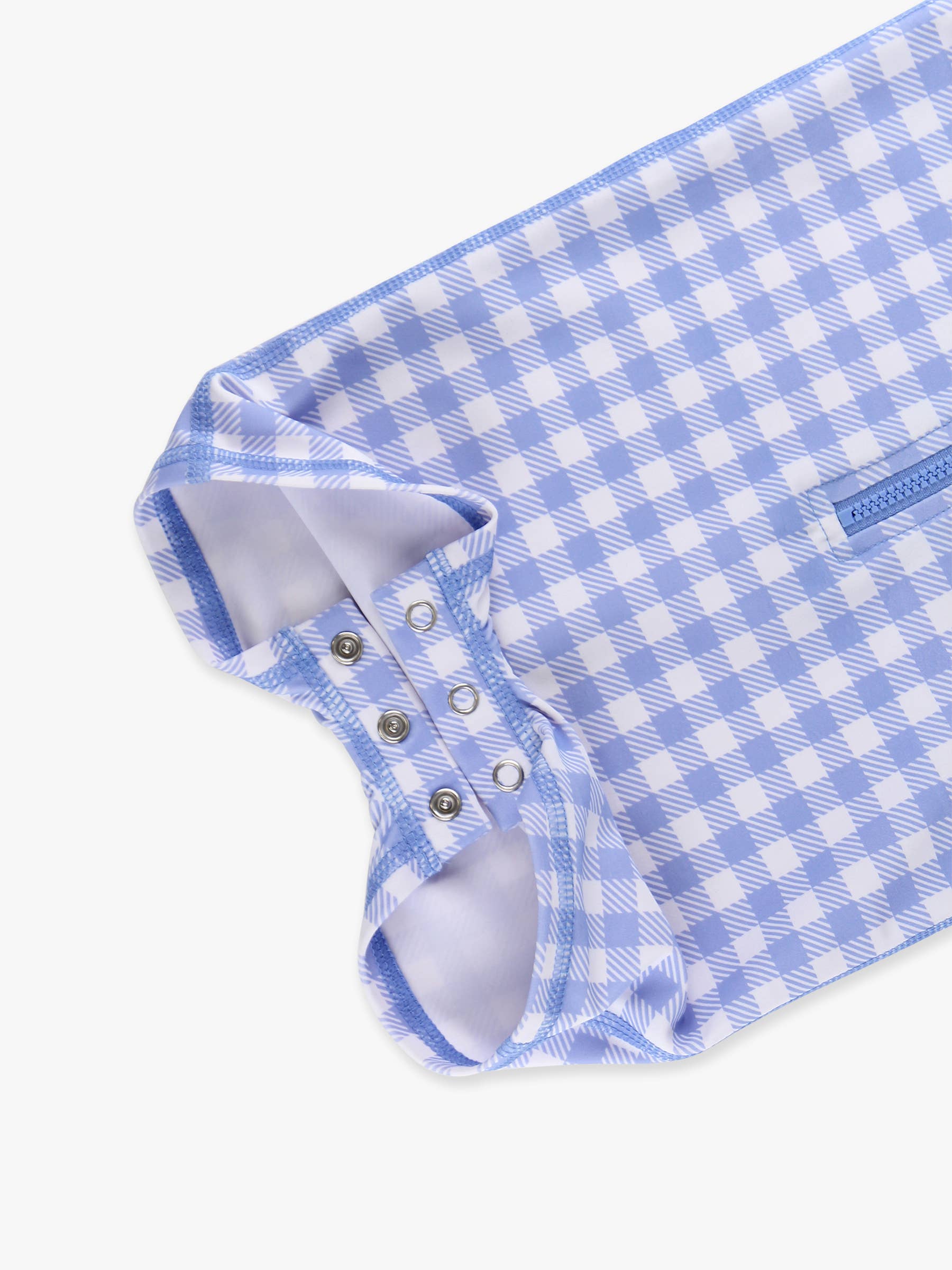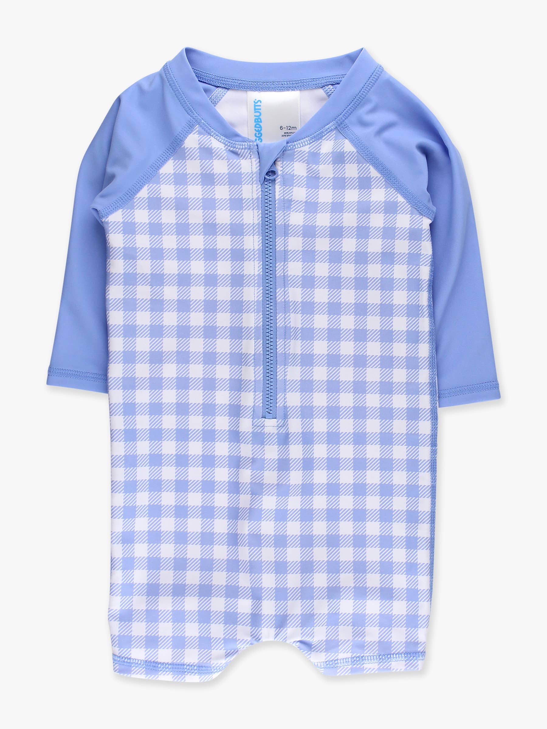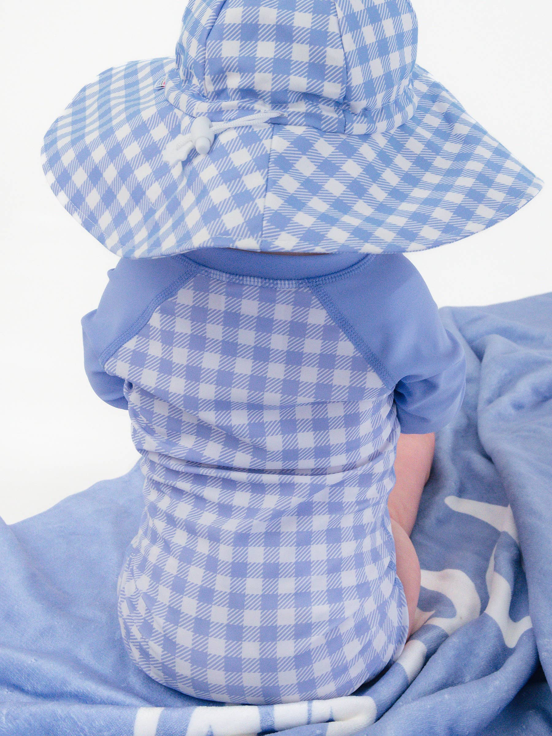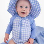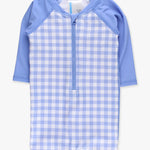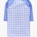 Gingham One Piece Rash Guard Swimsuit - Periwinkle Blue