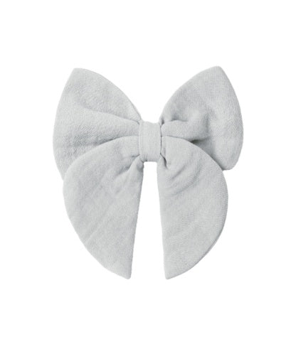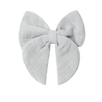 A sweet bow attached to a rose gold alligator clip for easy wear.