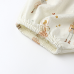 Coordinating bloomers are included with sizes 3-6 months through 18-24 months.
