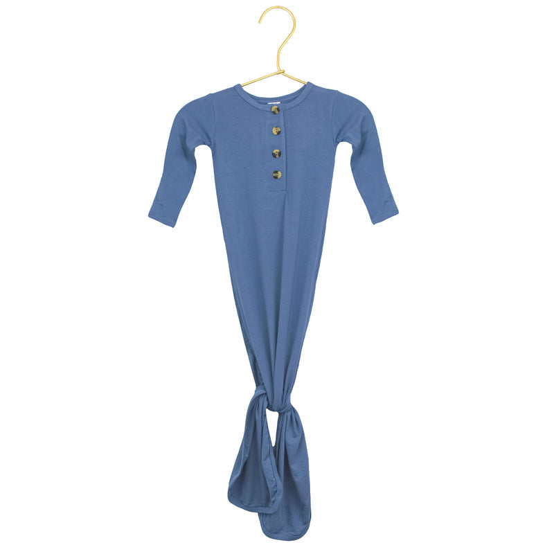 The easiest tie-bottom outfit for day or night. Made for hassle free diaper changes and gentle dressing, I designed this with a button-down front and tie bottom for simple closure (no more snaps at 2am!). Fold over wrist cuffs are the most thoughtful finishing touch.