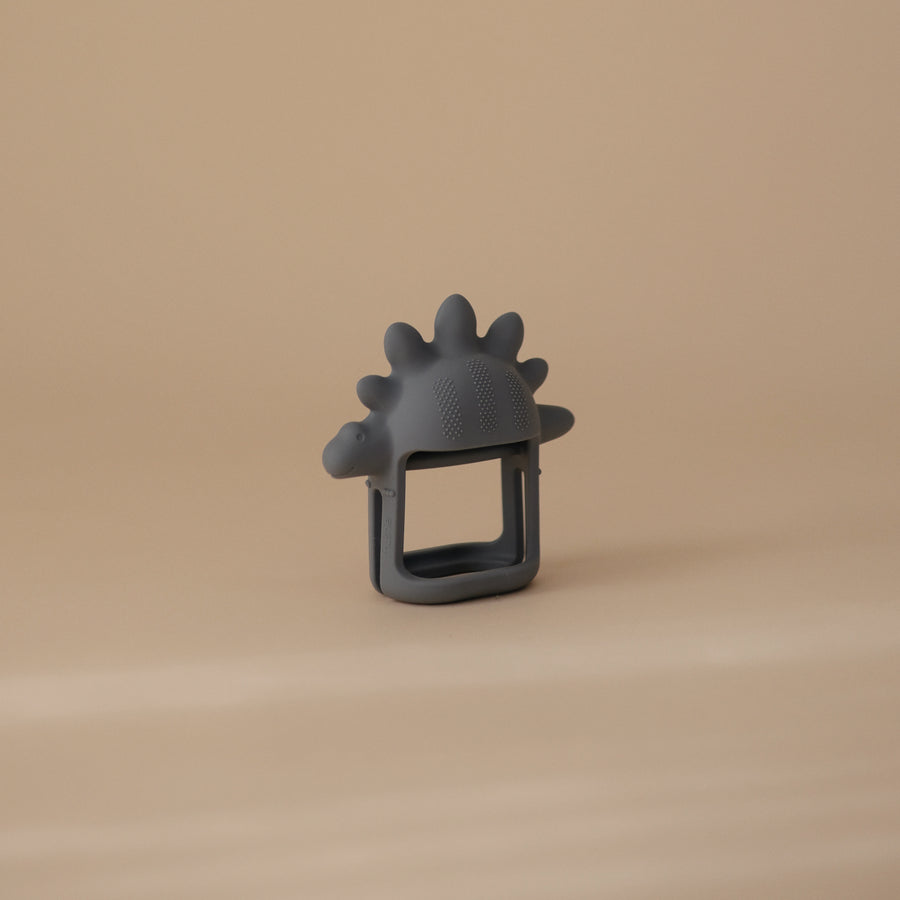 Help baby discover self-soothing techniques with our no-drop dino teether that supports the teething journey. With an interior handle that's easy to grasp without dropping, baby will enjoy holding tight and exploring the textured surface and soft edges. Made from 100% food grade silicone, this toy is safe for mouthing and chewing as littles seek relief for sore gums.