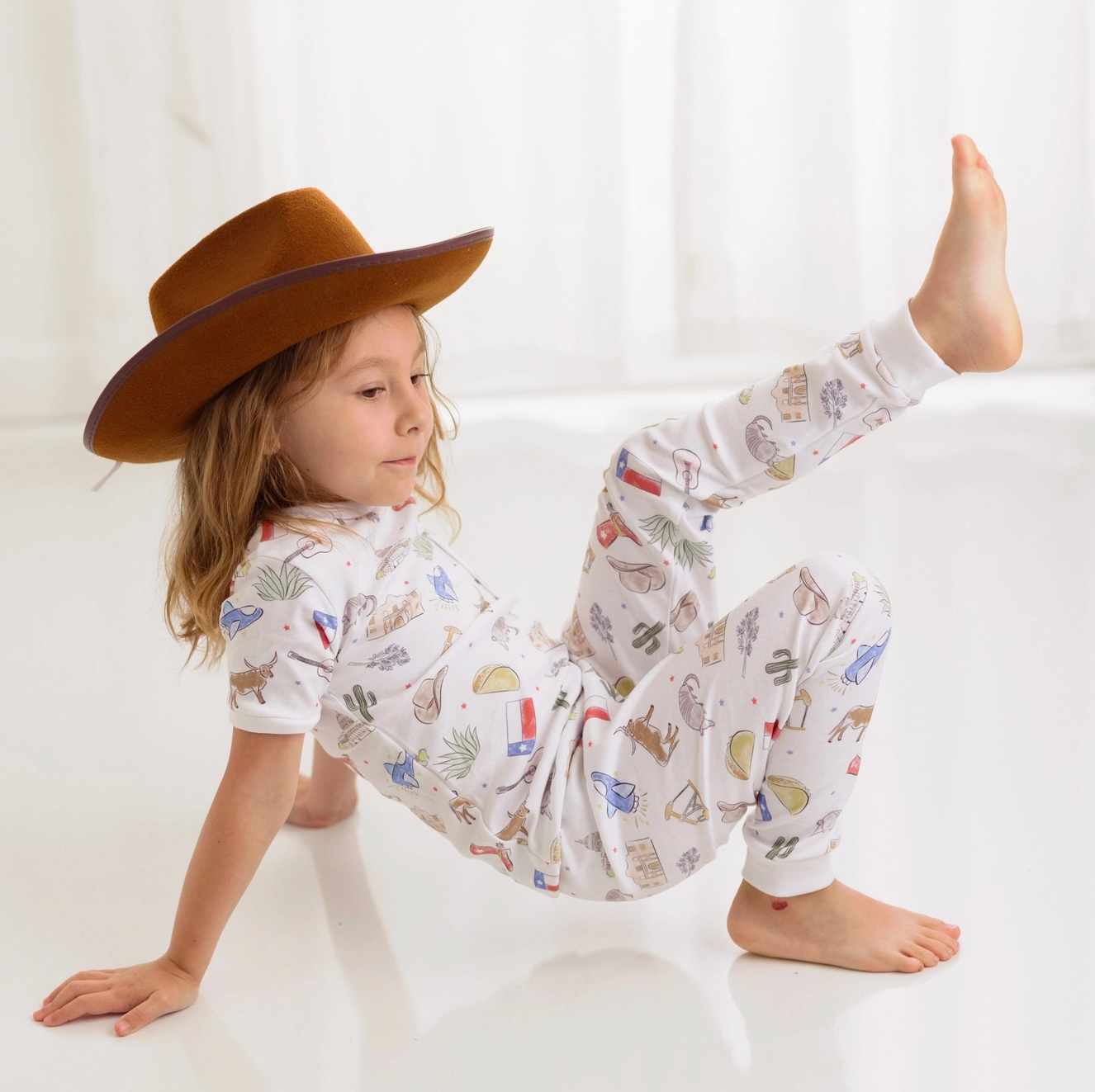 Get your little ones ready for a good night's sleep with our Texas Kids Organic Cotton Pajama Set! Made with soft, organic cotton, these pajamas feature a fun Texas design that will make bedtime something to look forward to. Perfect for the little Texan in your life!
